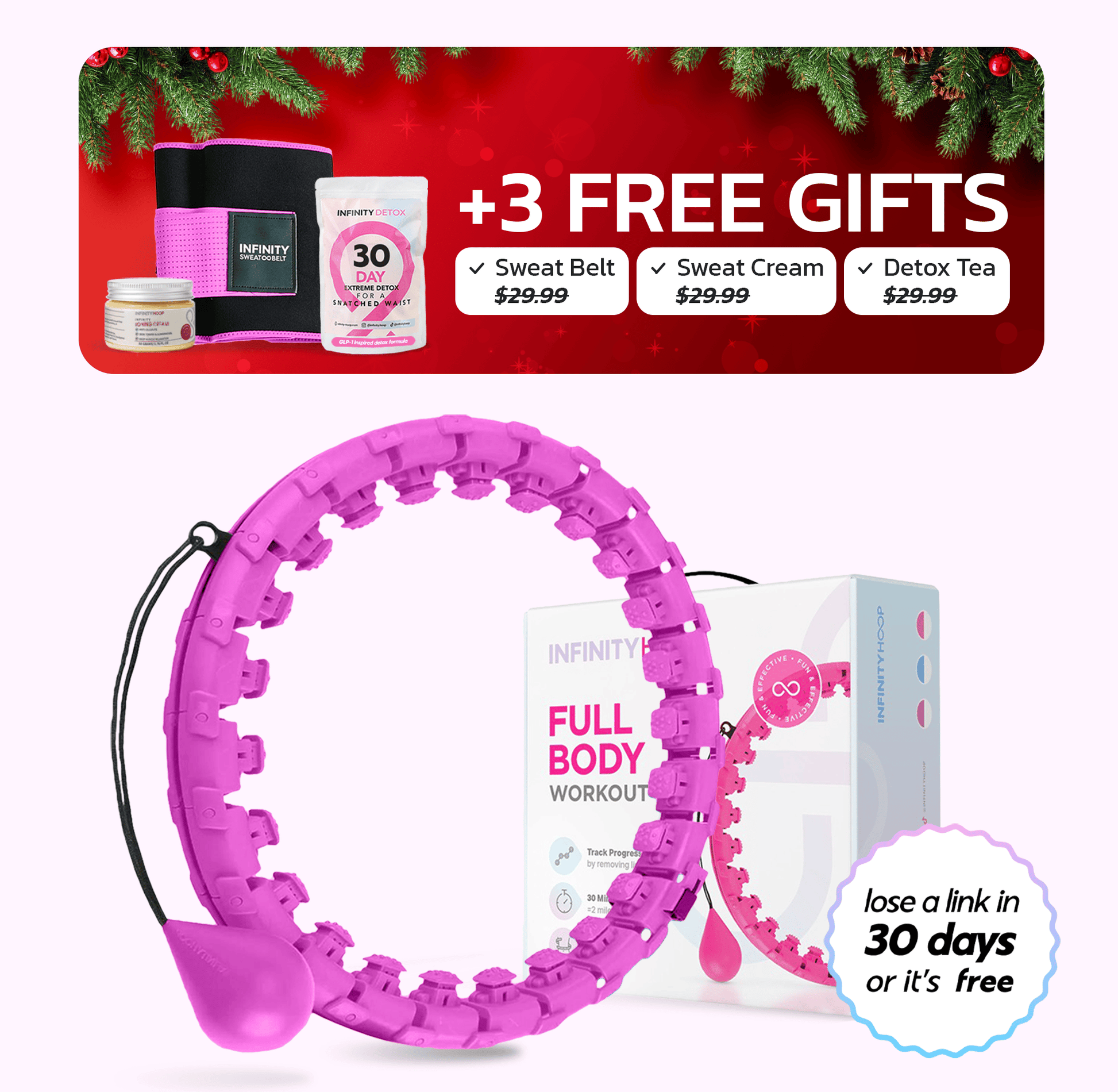 If you use the Infinity Hoop for 30 days (30 minutes daily) without removing a link withing a month, we’ll give you a full refund. (Terms here)